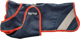 Hundtäcke med yttertyg i 600D Ripstop material, vind och vattentåligt. Fodrat med Agria mönstrat fleece. Reglerbara kardborrespännen fram samt under mage. Hål för koppel, bensnören bak. Storlek 20-70cm